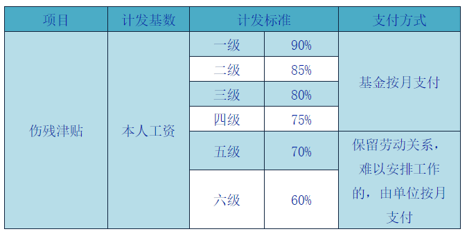1至4级伤残职工每人每月分别增加90.74元、85.70元、80.66元、75.61元;增加后,1至4级伤残职工月伤残津贴不足3555.93元的,增加到3555.93元。5级伤残职工每人每月增加70.57元,6级伤残职工每人每月增加60.49元;增加后,5至6级伤残职工月伤残津贴不足2862.03元的,增加到 2862.03元。